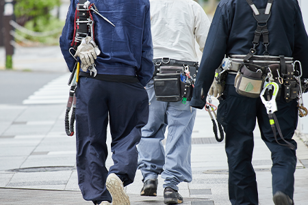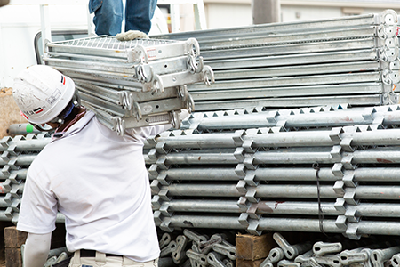 足場工事とは、建築現場など高所で作業をする際に、足元を支える足場の工事のこと。